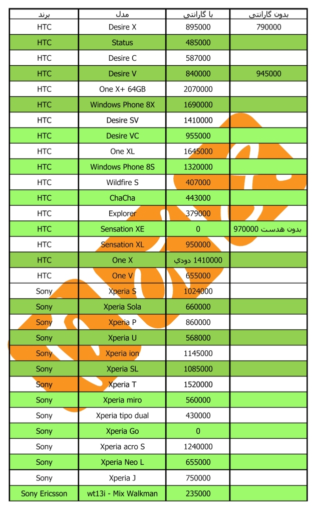 لیست قیمت گوشی های سونی و htc